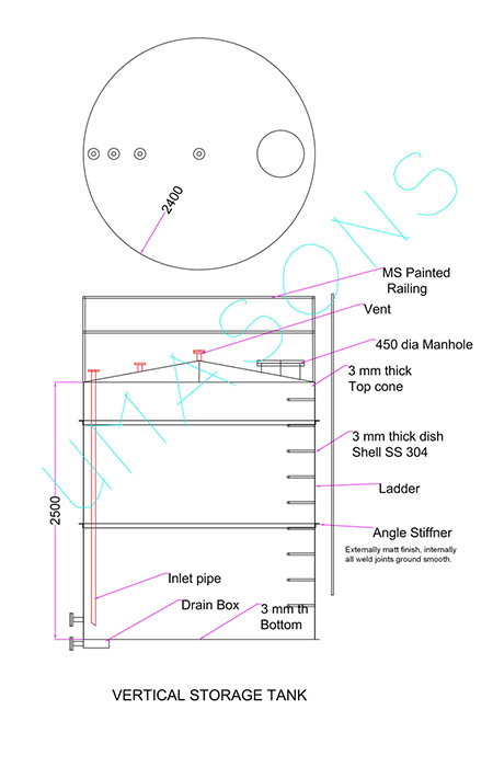 For e.g. A storage vessel designed by us with a capacity of 20000 liters designed to withstand 4kgs / cm. sq. internal pressure.